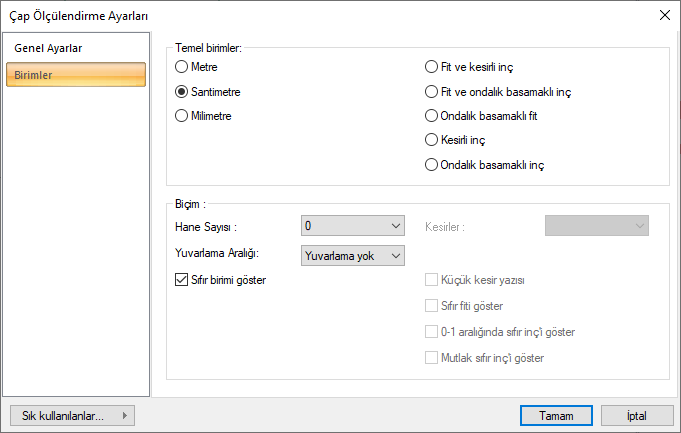 Çap Ölçülendirme Ayarları - Birimler Sekmesi