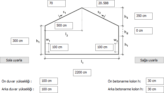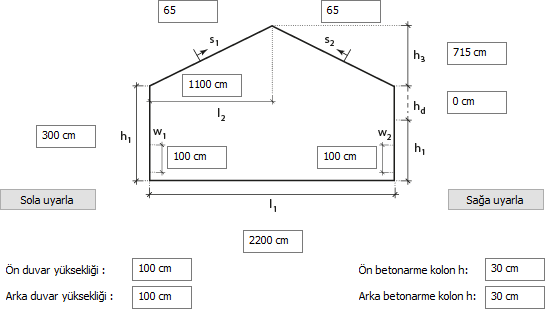 Çatı eğimi için s1 veya s2 eğim kutularına da değer verebilirsiniz. Bu durumda program çatı yüksekliğini otomatik olarak verecektir.