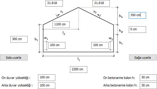 Girdiğiniz değere göre çatı yüksekliğiniz değişecektir.