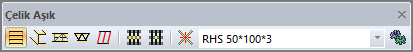 Çelik aşık toolbarı kesit listesinden RHS 50*100*3 kesitini seçin.