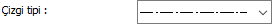 Çizgi tipi ![]() Aks çizgilerinin çizgi tipi seçilir. Kutucukların sağındaki aşağı ok butonları tıklandığında çizgi tipleri listesi açılır. Bu listeden istenen çizgi tipi farenin sol tuşu ile tıklanarak seçilir. |