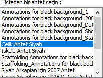 Listeden bir antet seçin ![]() Listede bulunan hazır antetleri çelik çizim paftanız için seçebilirsiniz. |