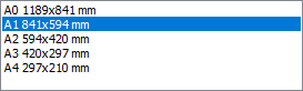 | Standart pafta boyutları  Standart pafta boyutları listelenir. Listeden pafta boyutu seçilebildiği gibi, genişlik ve yükseklik değeri girilerek de pafta boyutları belirlenebilir. |
