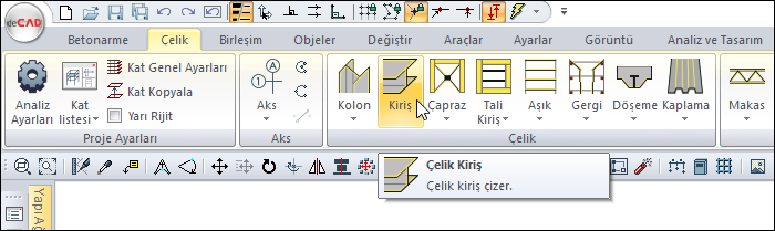 Ribbon menüden Çelik Kiriş ikonunu tıklayın.