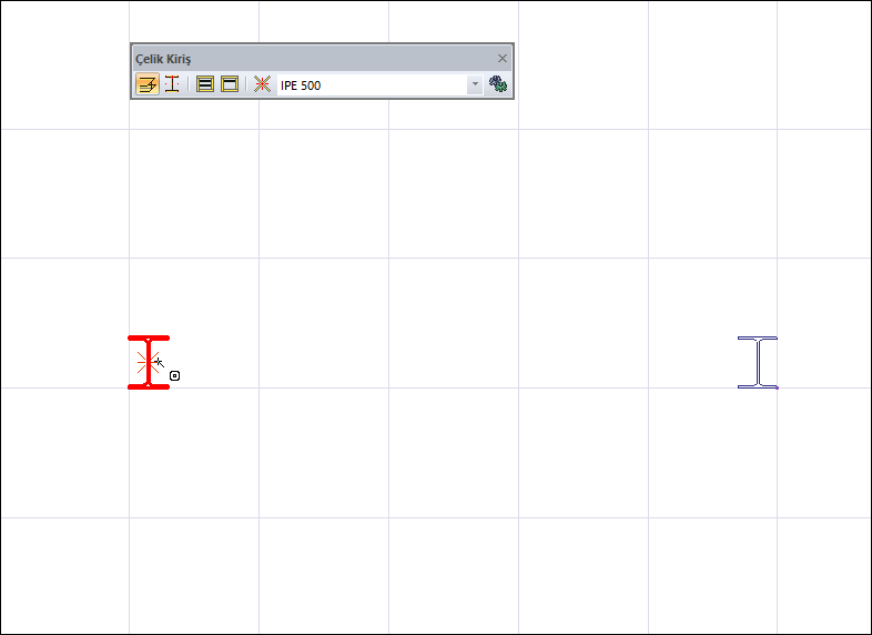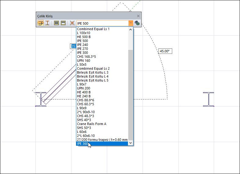 Çelik kiriş toolbarı profil listesinden profil seçilmesi ![]() |