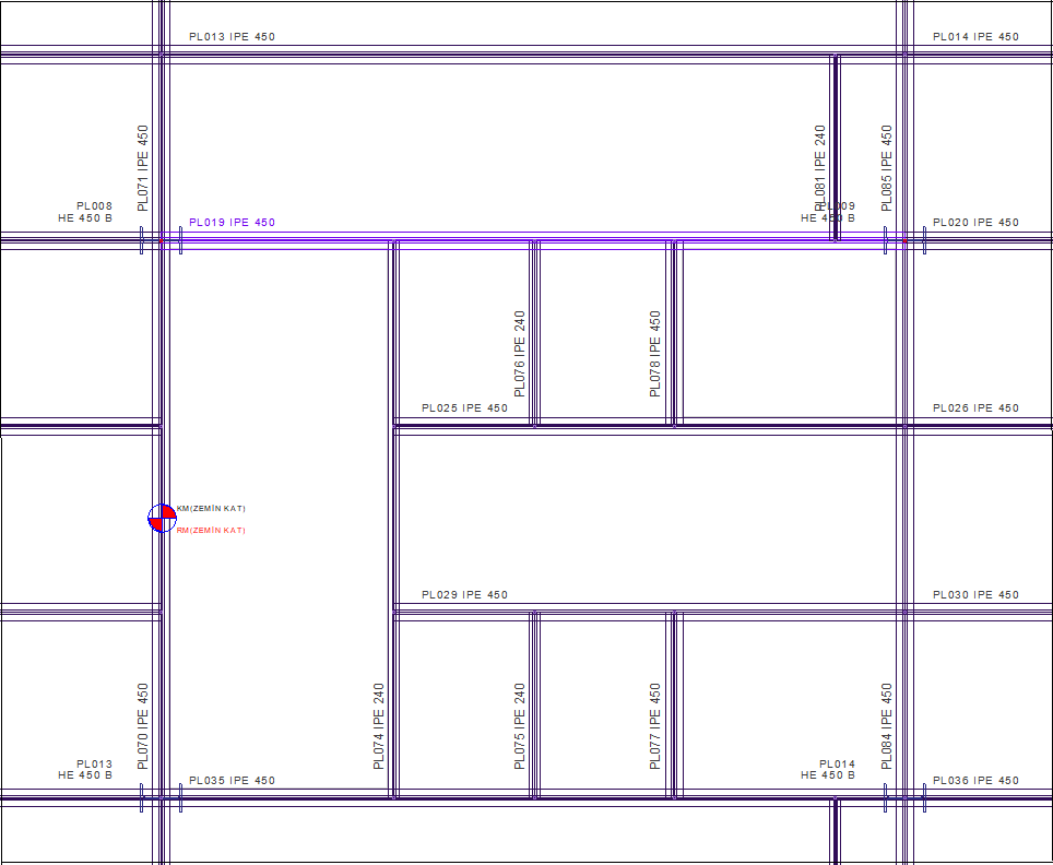 PL019 isimli çelik kirişin tasarım dayanım kontrolü, TBDY 2018 9.3.1.4’e göre belirlenen ve genel analiz sonucu en elverişsiz iç kuvvetler altında yapılır. Kirişin malzeme ve kesit bilgileri şu şekildedir:
