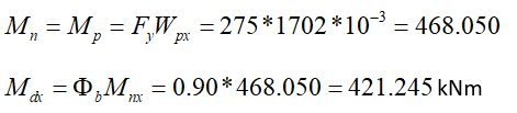 Kiriş tasarım eğilme momenti dayanımının kontrolü yapılırken yanal tutulu boyların farklı olduğu için istasyon istasyon her bir bölme için yapılmalıdır. Elle hesapta kolaylık olması açısından en elverişsiz eğilme momentine maruz kalan Lb= 0.75 m’lik bölme için yapılacaktır.