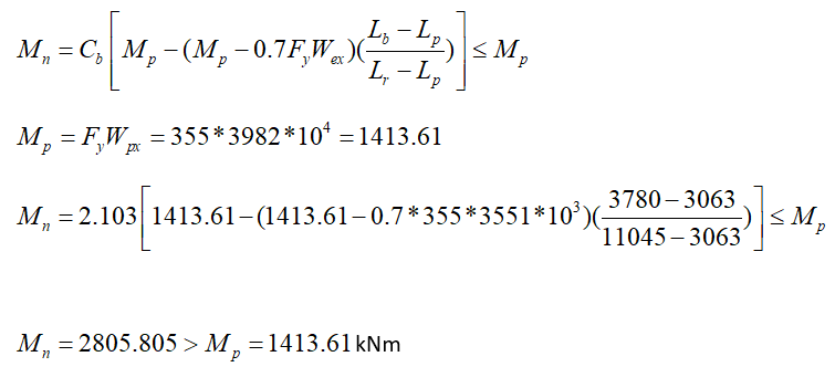 Bu durumda karakteristik eğilme momenti dayanımı, ÇYTHYE Denklem 9.3 ile hesaplanmalıdır. Bu hesapta kullanılan Cb, moment düzeltme katsayısı ilgili kolon üzerinde okunan moment değerlerine göre otomatik hesaplanmaktadır.