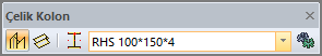 Çelik kolon toolbarı kesit listesinden RHS 100*150*4 kesitini seçin.