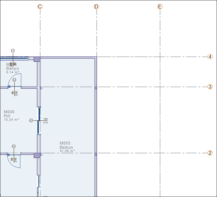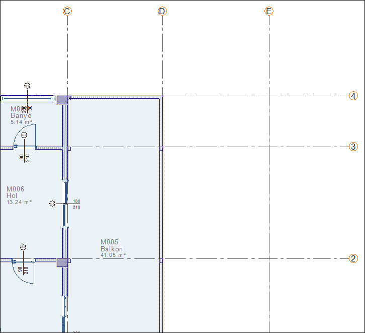 C-4 aks kesişimine tıklayın. Farenizi C-3 aks kesişimi üzerine götürün.