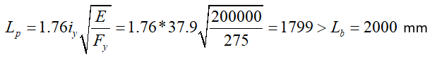 Yanal burulmalı burkulma sınır durumunda karakteristik eğilme momenti dayanımı, Mn hesabı için öncelikle Lp hesaplanır.