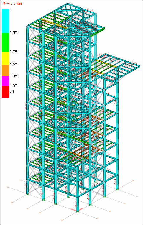 | PMM oranları  Farklı PMM oranlarına sahip elemanlar görünüş penceresinde farklı renklerde boyanır. Ekranın solunda yer alan renk skalasından hangi rengin hangi oranı temsil ettiği görülebilir.  |