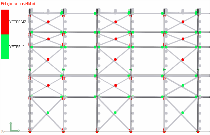 | Birleşim yetersizliği  Tasarlanan birleşimde hesaplar sonucu bir olumsuzluk içerenler görüntü penceresinde kırmızı bir nokta olarak gösterilir. Daha anlaşılır olması için örnek görüntü olarak çerçeve şeklinde gösterim seçilmiştir.  |
