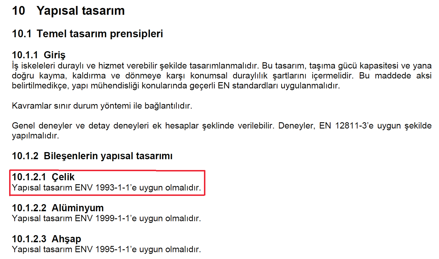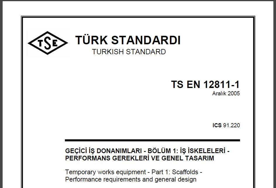 TS EN 12811-1’ e göre çelik iskele elemanların tasarımı TS EN 1993-1-1’ e uygun olmalıdır.