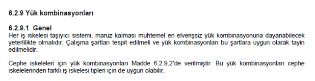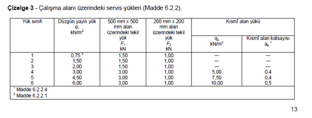 TS EN 1993-1-1‘ e ait yükleme kombinasyonları ile TS EN 12811-1 ‘de Çizelge 3 ’te yer alan yükler iskele sistemine uygulanmalıdır.