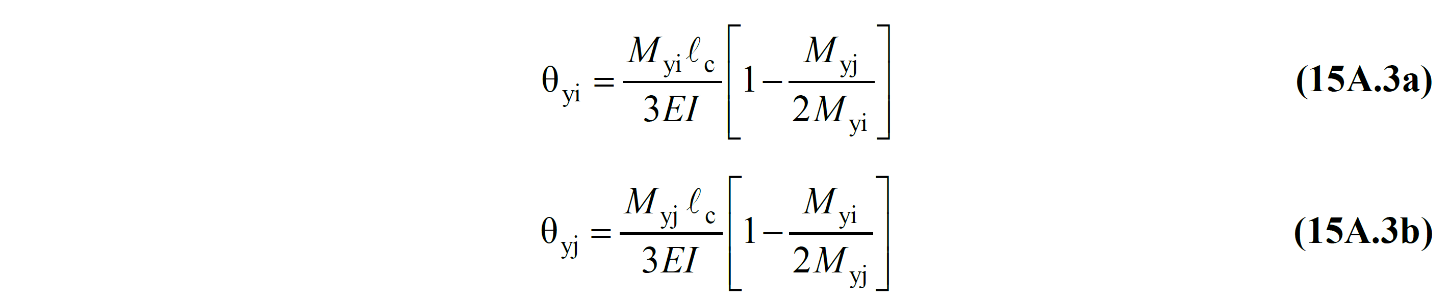Bu bağıntılarda θyi i düğüm noktasında akma dönmesini ifade etmektedir. Bir elemanın i ve j ucundaki akma dönmesi θyi ve θyj Denk.(15A.3) ile bulunmaktadır.
