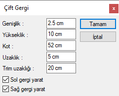 Sol/Sağ gergi yarat ![]() Çift gergi isteniyorsa her iki kutucuk da işaretlenir. Tek gergi isteniyorsa bir tanesi işaretlenir. |