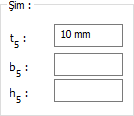 Kiriş berkitme levhası ![]() Kiriş berkitme levhası değer girilerek belirlenir. Girilecek değerler şematik çizimde gösterilmektedir. |