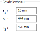 Gövde levhası ![]() Gövde levhası değer girilerek belirlenir. Girilecek değerler şematik çizimde gösterilmektedir. |
