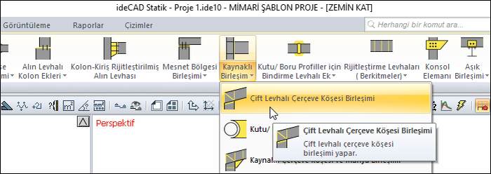 Ribbon menü Birleşim sekmesi Konstrüktif Birleşimler başlığı altından ulaşabilirsiniz.