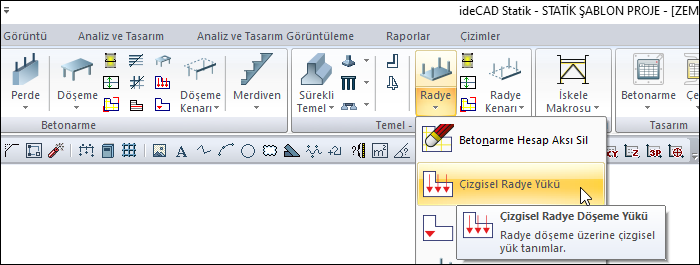 Çizgisel radye yükü tanımlamadan önce radye temel ![]() |