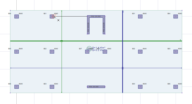 Çizgisel radye yükü tanımlanmış radye temel ![]() |
