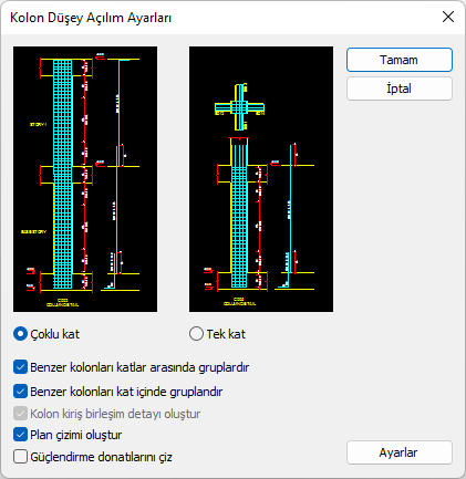 Ribbon menüde Çizimler/Çizim Oluştur/Kolon Düşey Açılımları ikonunu tıklayın.