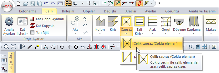 Ribbon menüden Çelik Çapraz (Çoklu Eleman) ikonuna tıklayın.