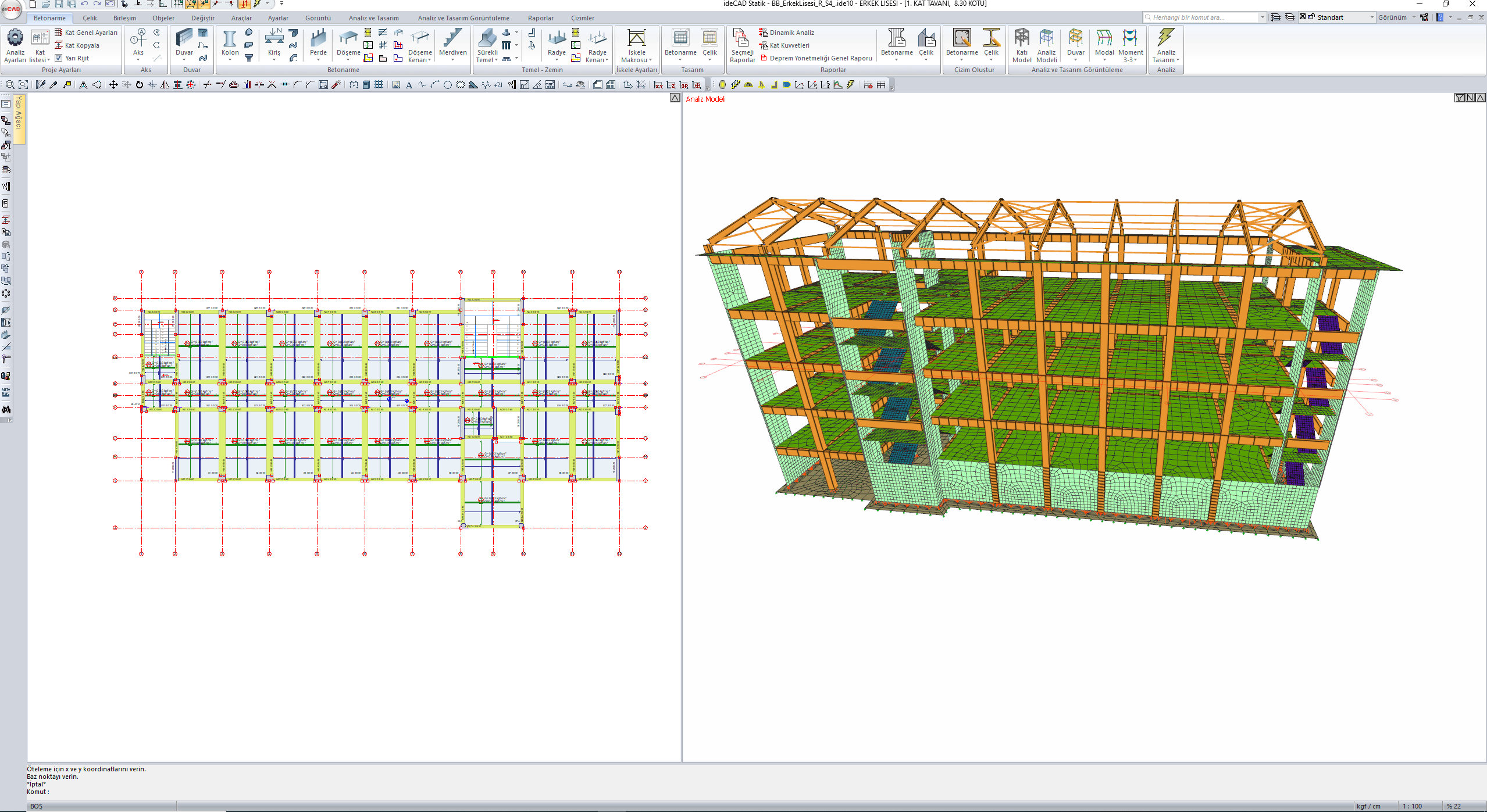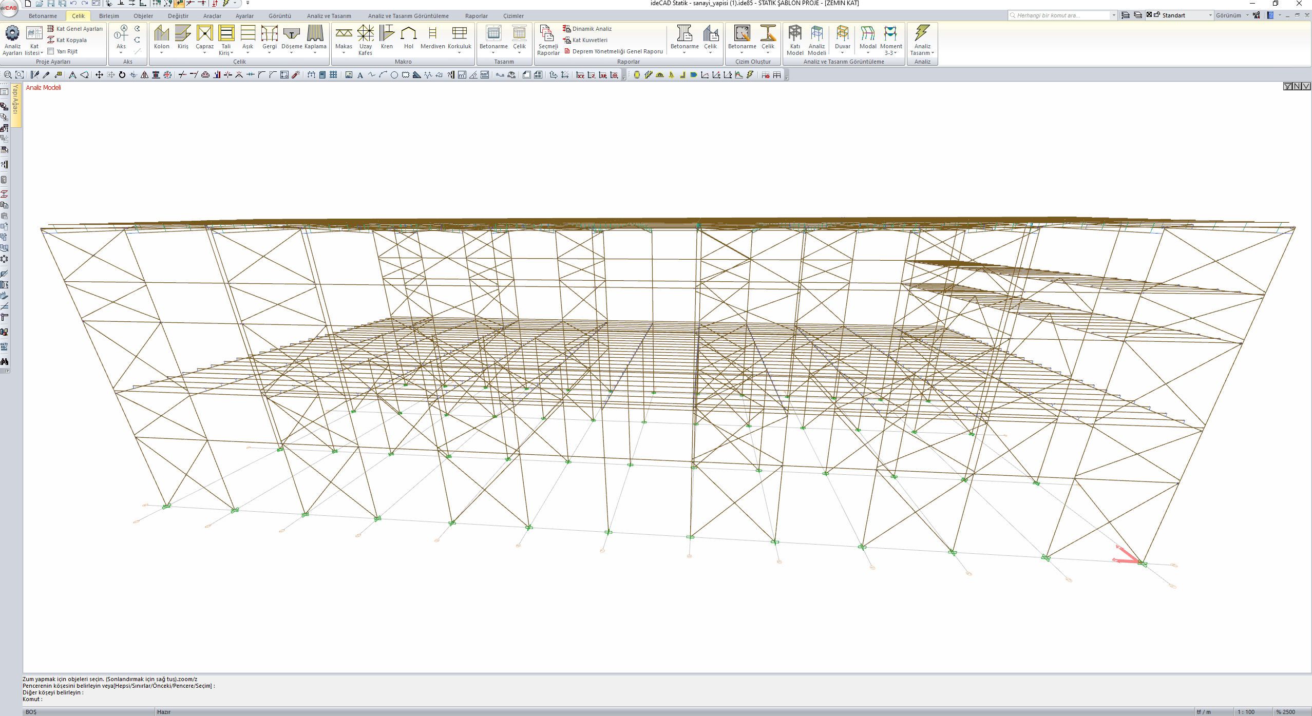 Kiriş ve kolonlar, çerçeve (çubuk) sonlu elemanları olarak otomatik modellenir.