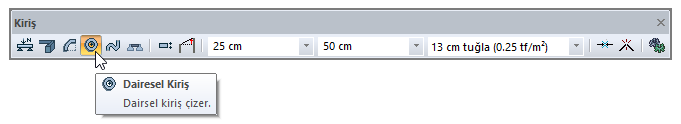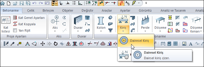 Dairesel Kiriş komutuyla daire şeklinde betonarme kirişler oluşturulur.