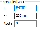 Nervür levhası ![]() Nervür levhası değer girilerek belirlenir. Girilecek değerler şematik çizimde gösterilmektedir. |