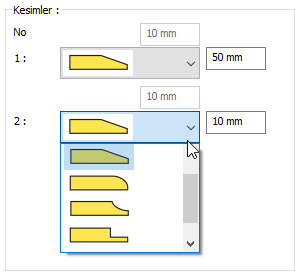 Kesimler ![]() Levhaların sahada kolay montajı için şev kullanılmasına, şev tipine ve geometrik özellikleri değer girilerek belirlenir. |