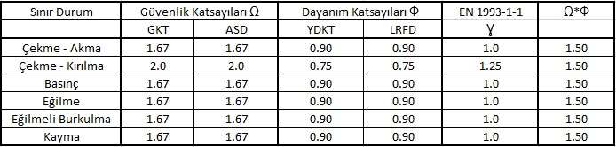 EN 1993-1-1; LRFD- YDKT göre oldukça detaylı kesit sınıflandırma, yük artırma katsayıları ve güvenlik katsayıları ile gerçek davranışa daha yakın tasarım sağlar.
