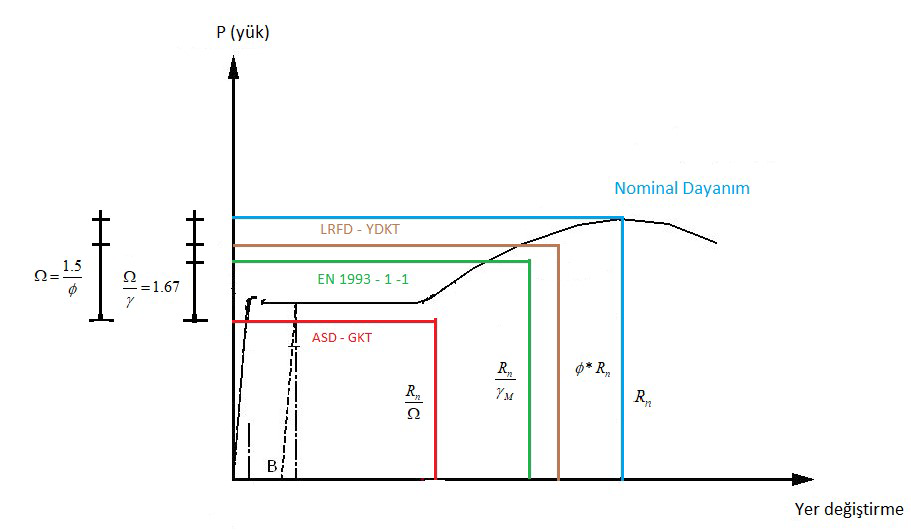 LRFD - YDKT ve ASD - GKT; farklı limit durumları kullanarak tasarım kuralları oluşturur. Elastik ve plastik tasarım kuralları arasındaki fark nedeniyle ekonomik tasarım gerçekleştirilir.