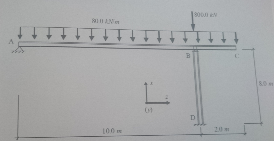Belirtilen yükler altında çelik kolonu HEB kesit kullanarak S355 malzeme ile tasarlayınız. Kolon alt ucu ankastre, üst ucu ise mafsallıdır.