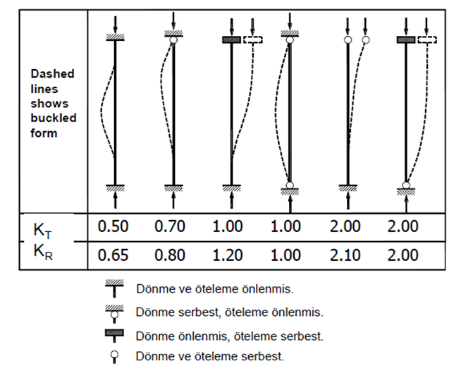 ** Her iki yön içinde mesnet koşullarından k= 0.7