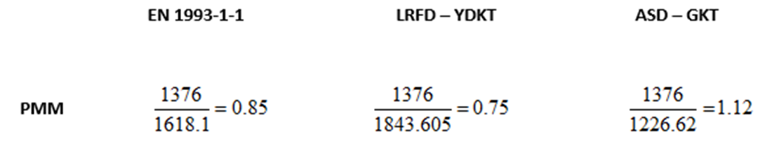 EN 1993-1-1 ile tasarım prosedürü diğer yönetmeliklere göre karmaşık olmasına rağmen mühendislerin daha az insiyatif almasını sağlarken, LRFD – YDKT daha pratik çözüm üretmektedir.