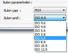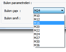 Bulon çapı ![]() Bulon çapı listeden seçilir. |
