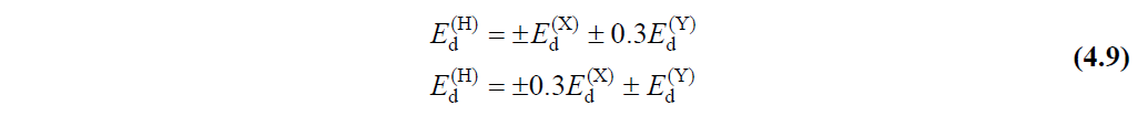 Ed(H) yatay deprem etkisini temsil etmektedir. Eğer mevcut bir yapıda Şekildeğiştirmeye Göre Değerlendirme ve Tasarım (ŞGDT) yaklaşımı ile performans değerlendirmesi yapılıyor ise yatay deprem etkisi TBDY 5.2.2.3 ‘de olduğu gibi tanımlanmalıdır. Eğer sisteme TBDY 5.6 'da verilen İtme Yöntemleri ’nden herhangi bir tanesi uygulanıyor ise Ed(H), ( X ) ve ( Y ) doğrultularında deprem etkileri ayrı ayrı hesaplanır ve daha sonra TBDY 4.4.2.1 'e göre birleştirilir. TBDY 4.4.2.1 'e göre yatayda birbirine dik ( X ) ve ( Y ) doğrultularında tanımlanan deprem etkileri Denk.(4.9) 'da tanımlandığı gibi birleştirilir.