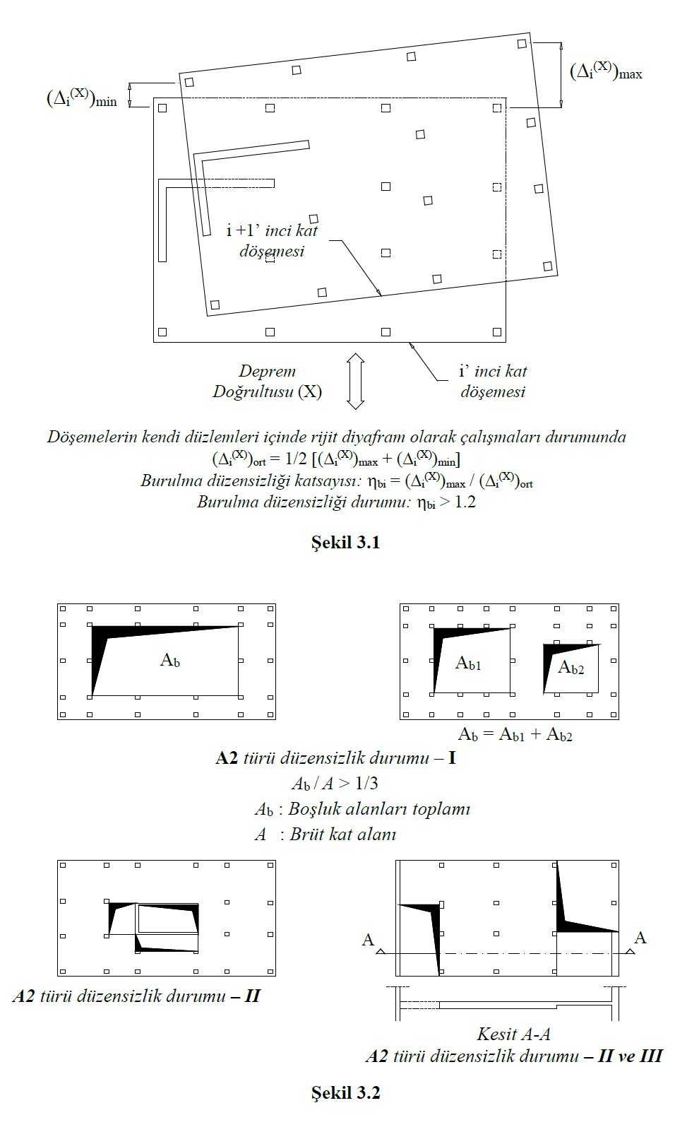 Tablo 3.6 ’da tanımlanan düzensizlik durumlarına ilişkin koşullar aşağıda belirtilmiştir: