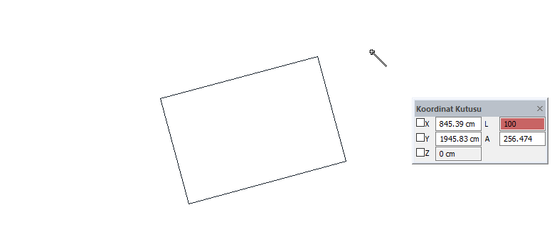 Dörtgenin diğer kenarının belirlenmesi 2. yöntem: koordinat kutusu ile ![]() |