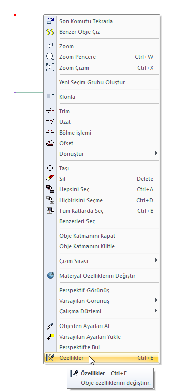 Ayarlarına girmek istediğiniz çizgiyi seçin farenin sağ tuşuna tıklayarak açılan menüden Özellikler satırına tıklayın.