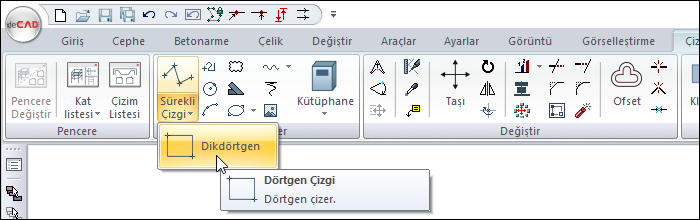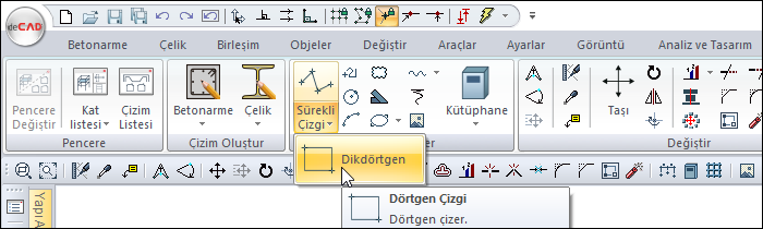 Statik program da ribbon menü Çizimler sekmesi İlkel Objeler başlığı altından ulaşabilirsiniz.