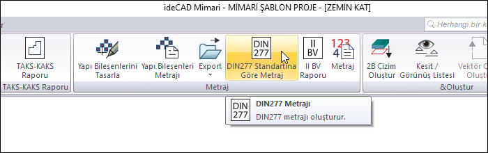 DIN277 Standardına Göre Metraj komutunu tıklayın.