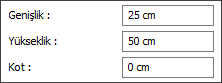 Değer ![]() Boyut gibi sayısal özellik için değer girmenize olanak sağlar. |