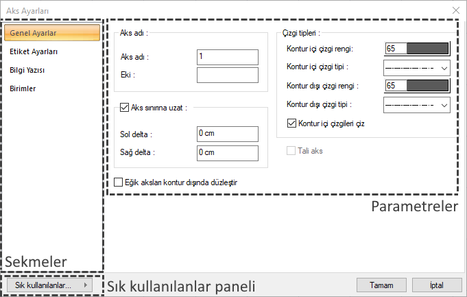Aşağıda Aks Ayarları diyaloğu örnek olarak gösterilmiştir.