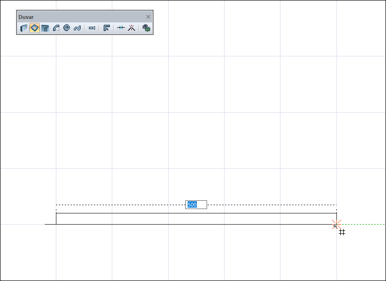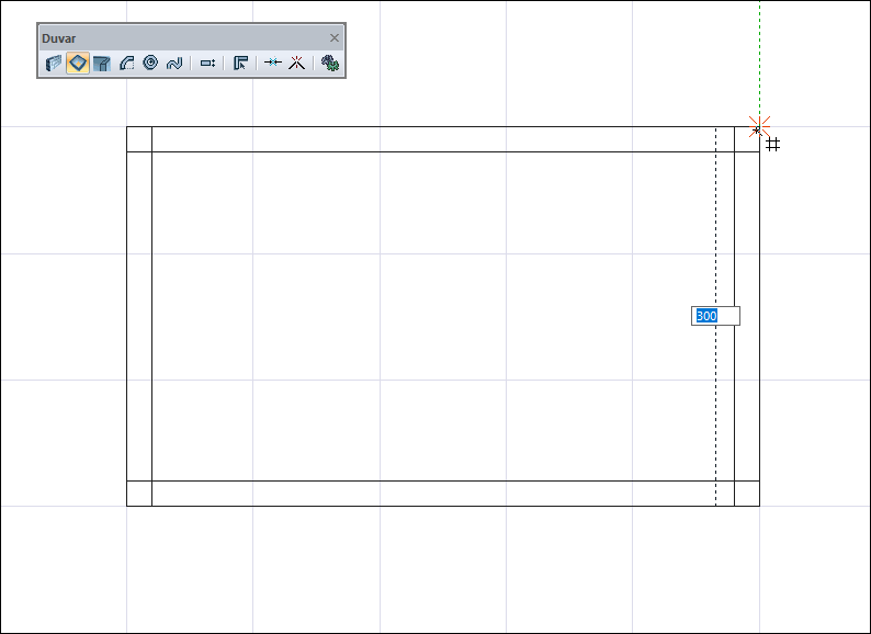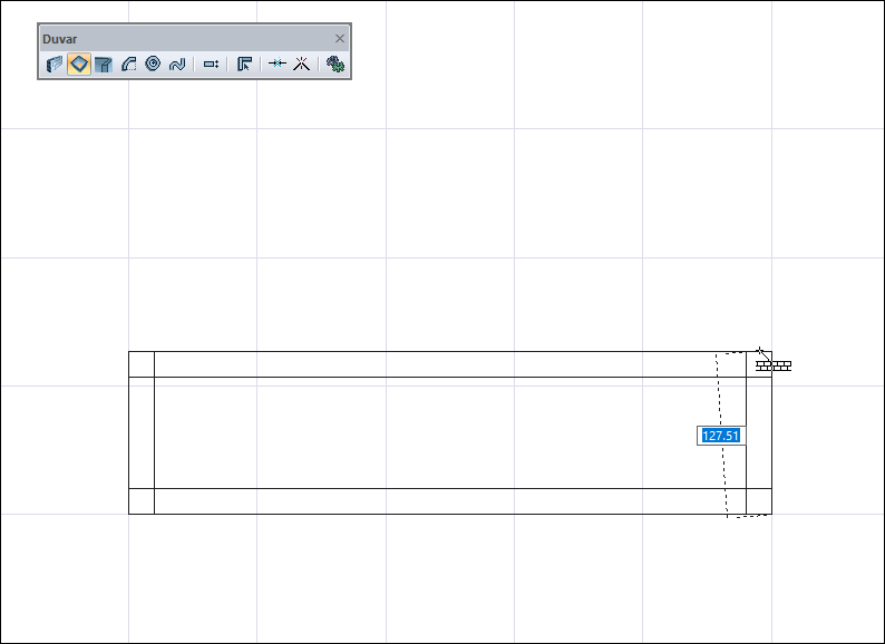 Dörtgen Duvar ikonunu tıklayın. Duvar toolbarı açılacaktır.