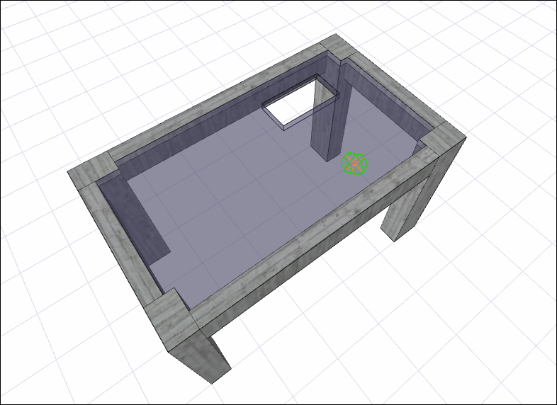 Burada geçen bir kesit alınırsa ya da perspektif penceresinde kontrol edilirse oluşturulan kapalı poligonun döşemede boşluk olarak yer aldığı görülür.