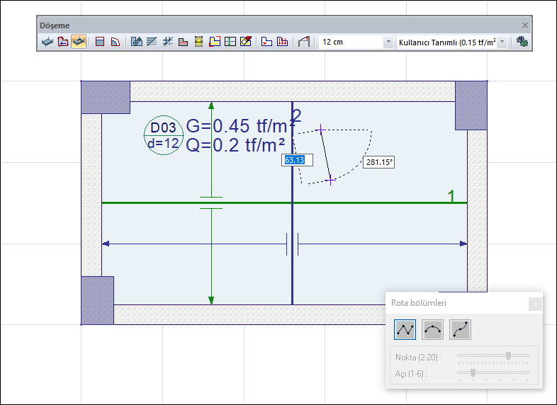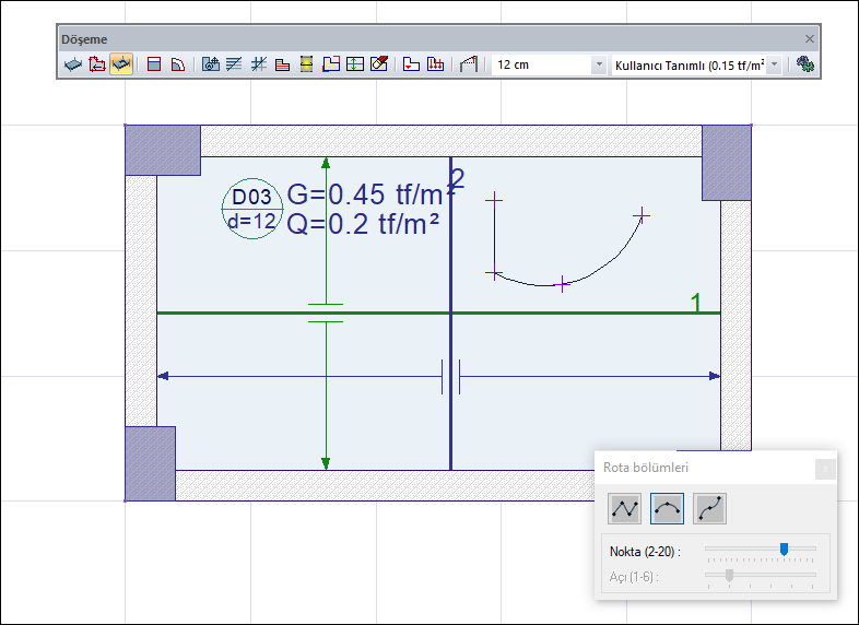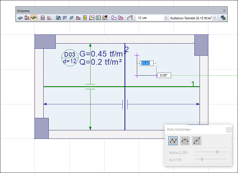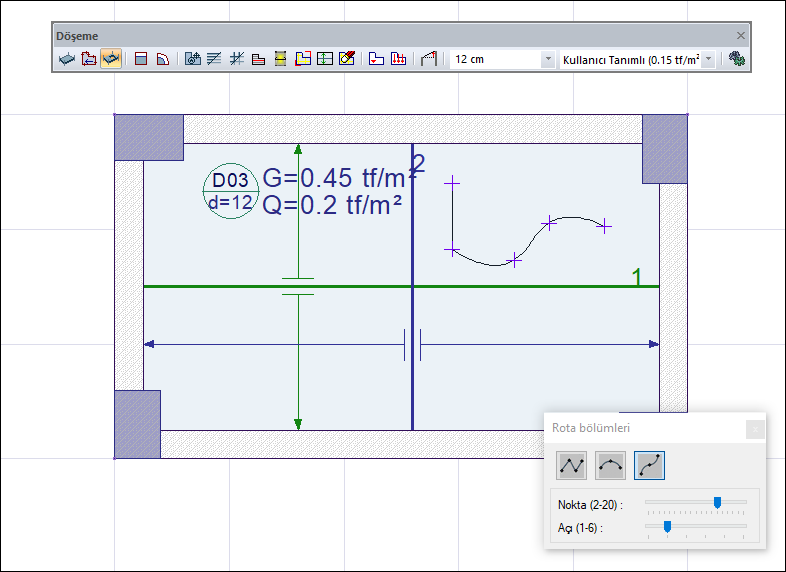 Döşeme boşluğu ikonuna tıkladığınızda rota bölümleri diyaloğu da açılacaktır.