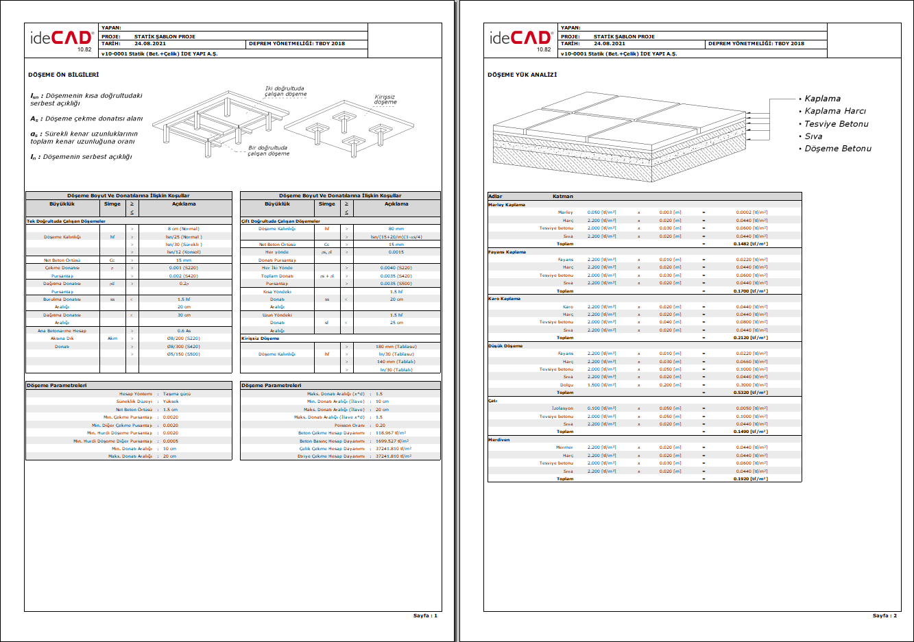 Örnek döşeme genel raporu sayfaları ![]() |